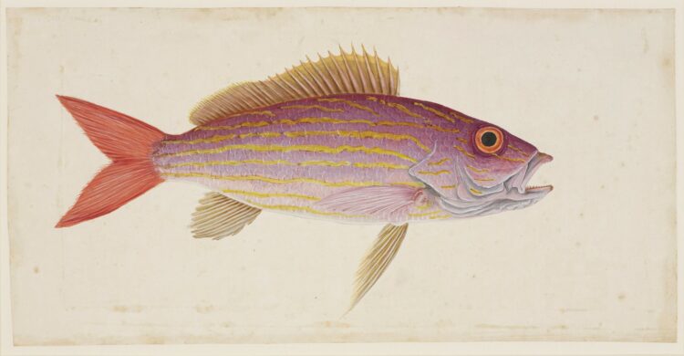 Afb. 1. Mark Catesby, “The Lane-Snapper” [Lutjanus synagris], ca. 1722-1726. Courtesy of Royal Collection Enterprises Limited 2025 | Royal Collection Trust, London.
