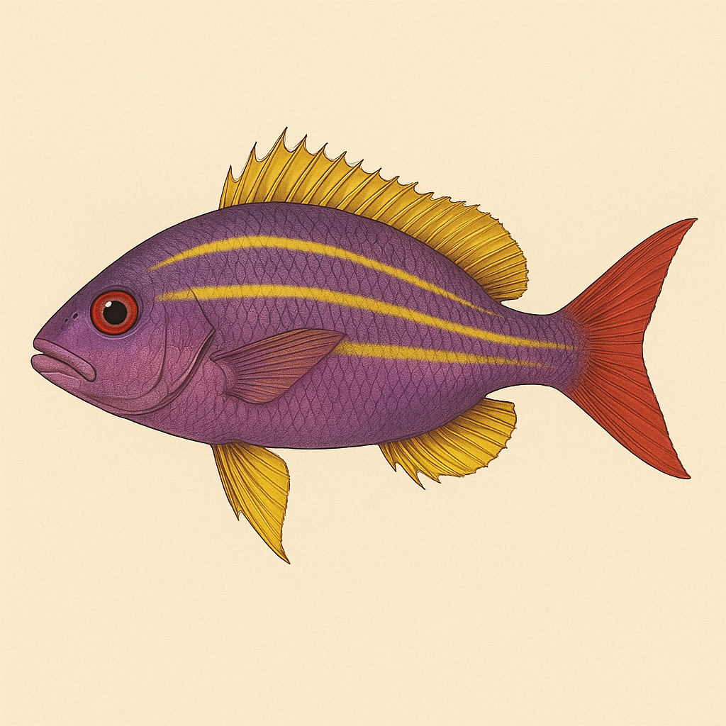 Afb. 3. Afbeelding gegenereerd door ChatGPT DeepResearch 5, OpenAI, 7 oktober 2025, prompt: “Create an image of a “Lane-Snapper” based on the following information: [essay Catesby, “The Lane-Snapper”, The Natural History, deel 2, pl. 17]”.